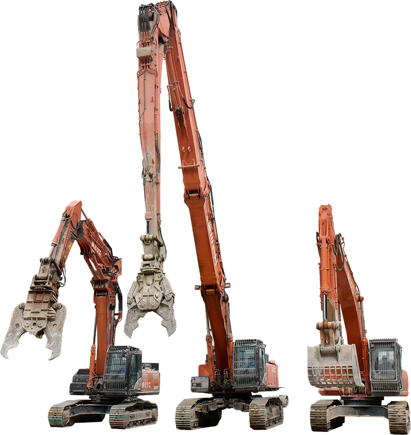 ミツエでは、多様な重機を保有しており、さまざまな現場に対応することができます。1.6立米 ロングブーム27m(超大型・50tクラス)、1.2立米 ロングブーム 21mを保有しています。